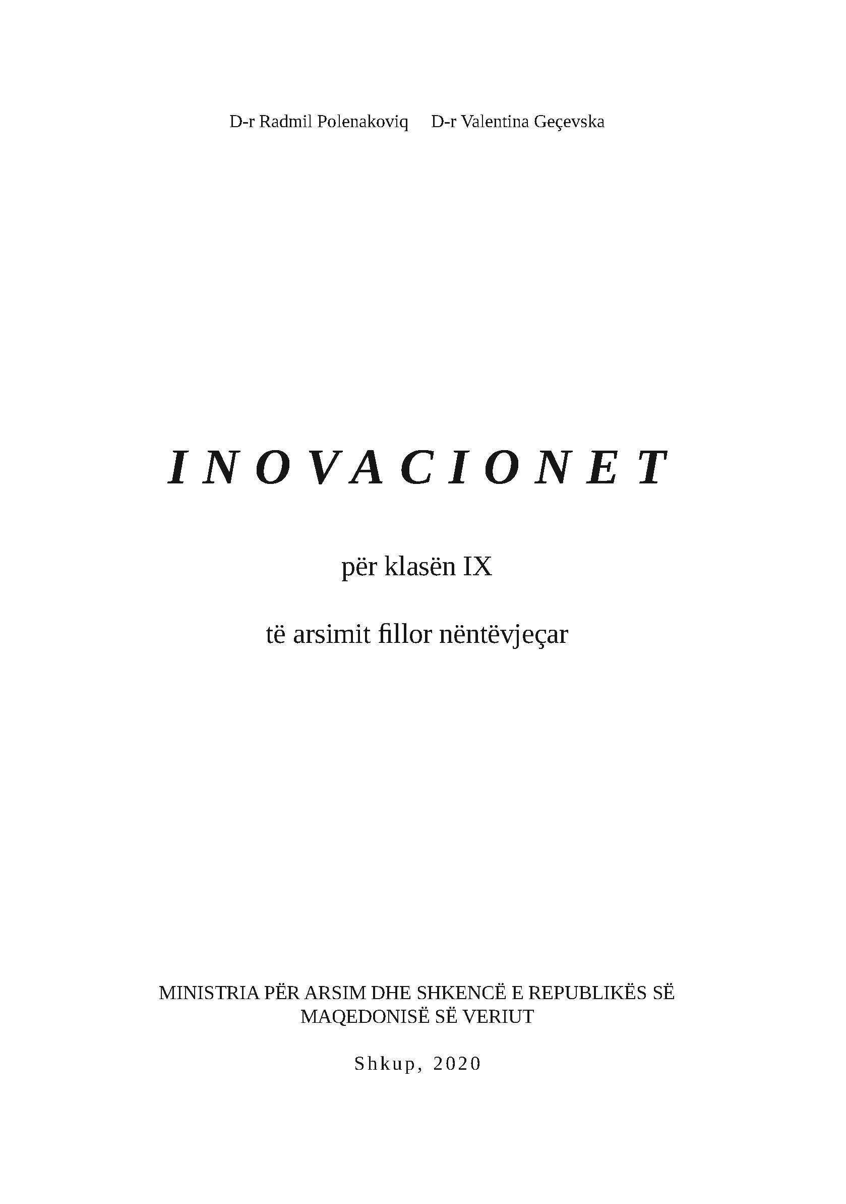 Maqedonia e Veriut Inovacionet 9 Klasa 9 Gjuhe shqipe e book